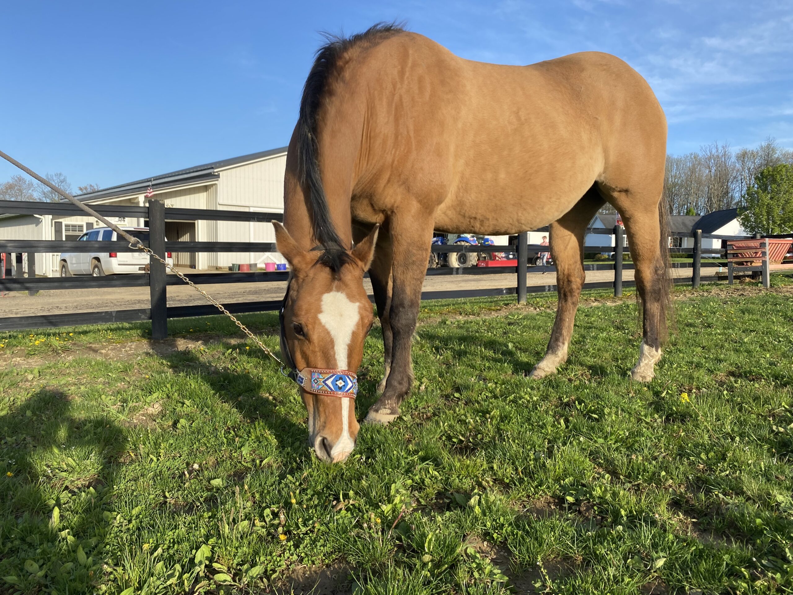 Kind-eyed and affectionate, Belle loves attention and forms deep bonds. She’s easy to catch, great on the ground, and has impeccable barn manners. Sound, sane, and uncomplicated – she’s the rare mare who combines rock-solid reliability with a tender, loving heart.